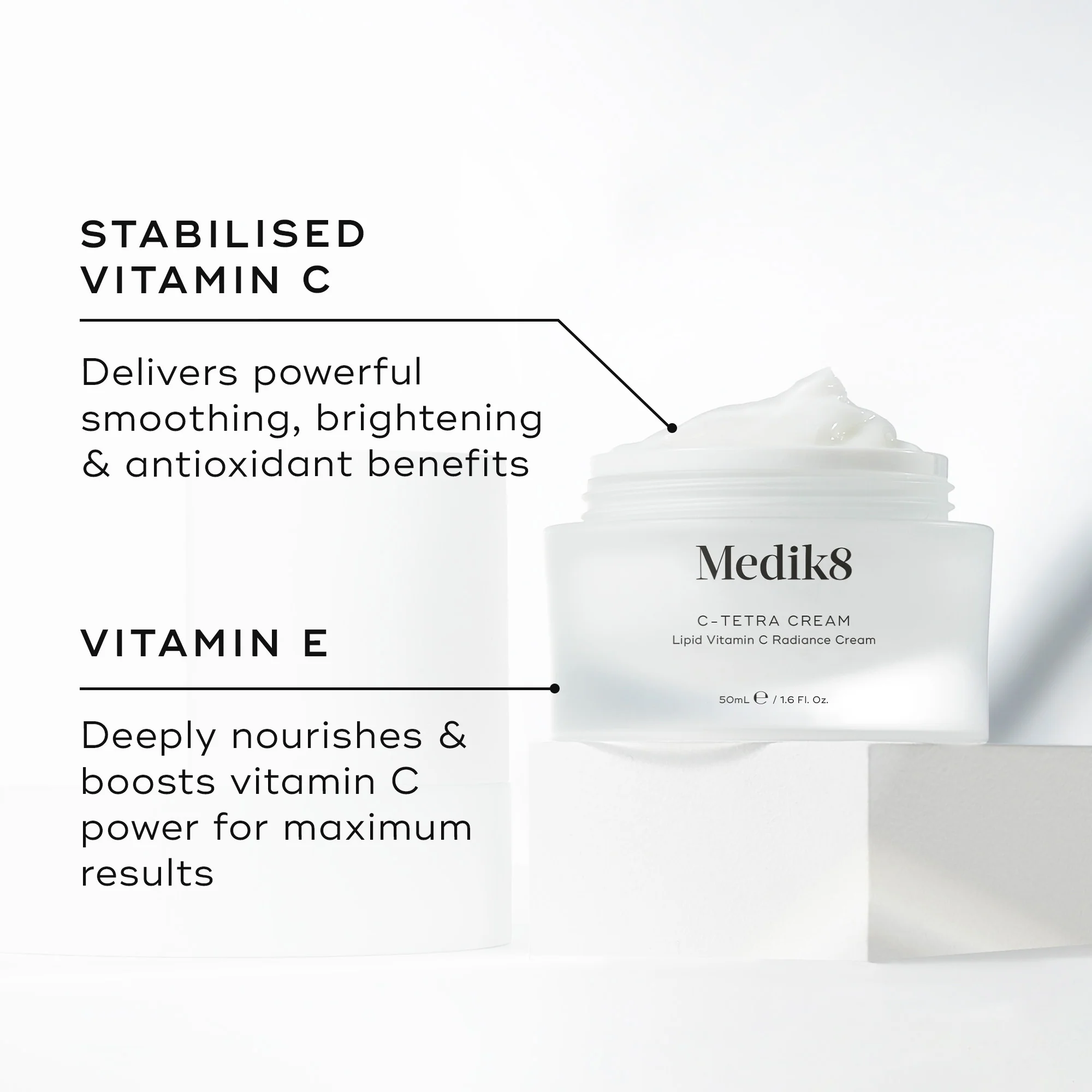 Harnessing the proven antioxidant power of Medik8's original C-Tetra serum in a silky and nourishing cream, C-Tetra Cream works to restore the look of skin radiance while protecting against the visibly ageing effects of environmental stressors.